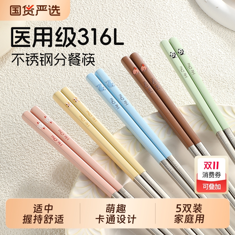 儿童筷子3岁5岁6岁以上食品级家用高档抗菌防霉分人木质不发霉