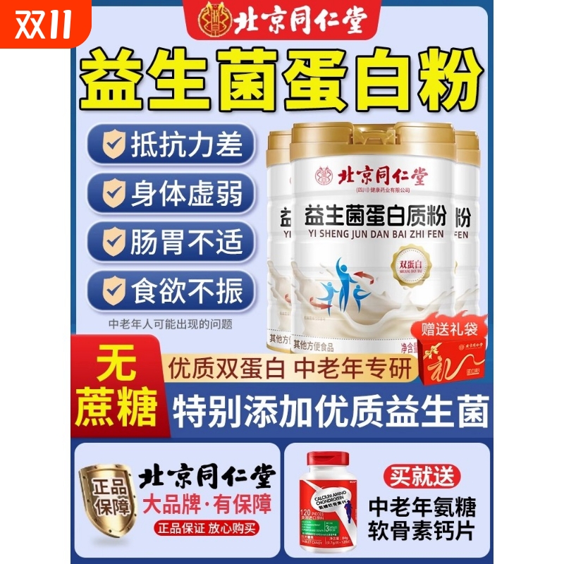 北京同仁堂高钙营养蛋白粉成人中老年无蔗糖益生菌送礼官方旗舰店