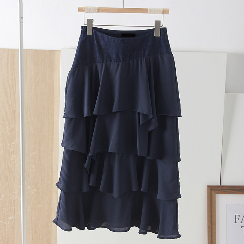OVV秋冬新款女装千鸟格不规则下摆设计中长款休闲半身裙