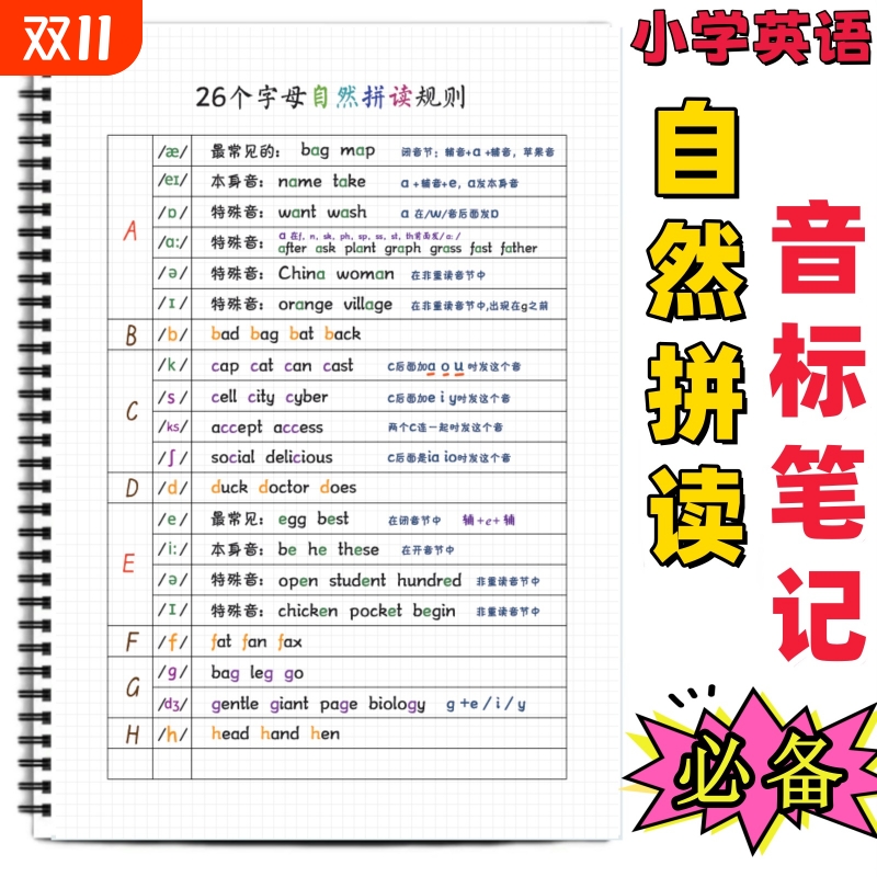 自然拼读记单词一本通口诀表音标英语专项教材小学生自学零基础入门英