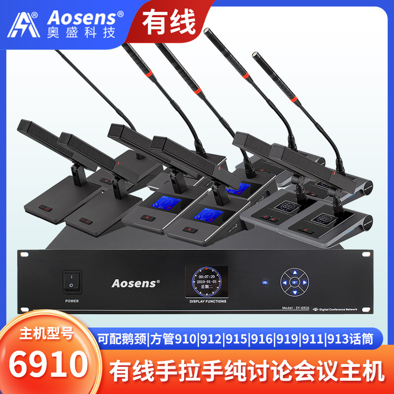 奥盛 定制有线手拉手纯讨论会议系统主机鹅颈话筒方杆会议麦克风