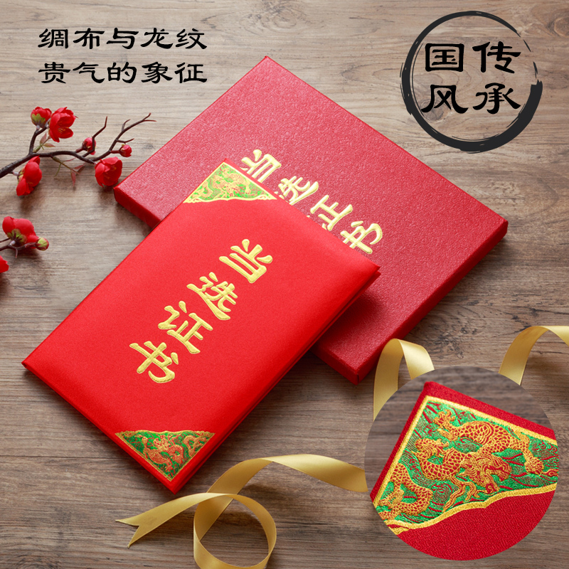 高档绸布荣誉证书聘书当选九千年