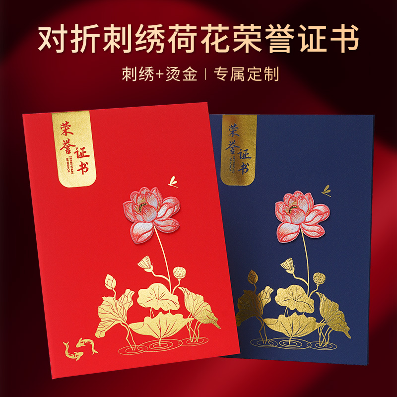 九千年国风刺绣烫金荣誉证书