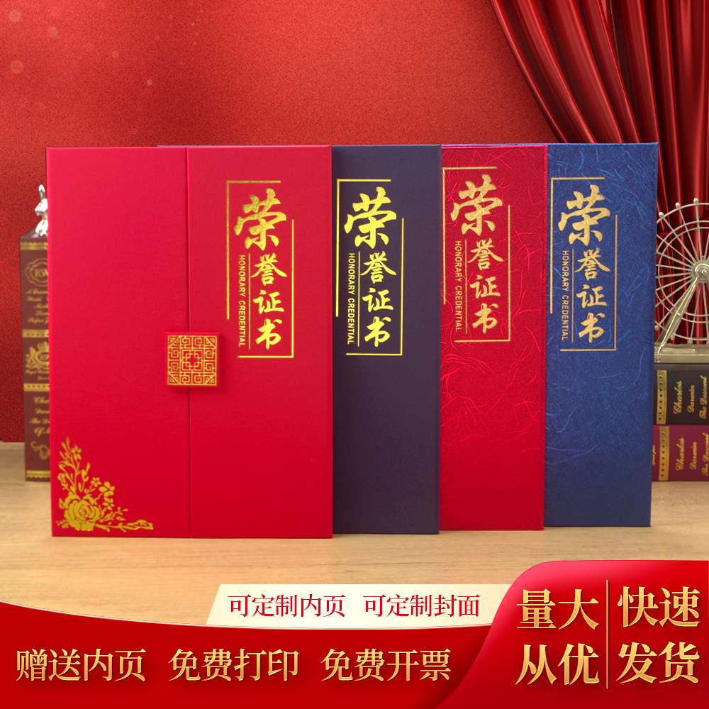九千年结业证书高档荣誉证件书外壳保护套定制奖状中小学生荣誉证优秀