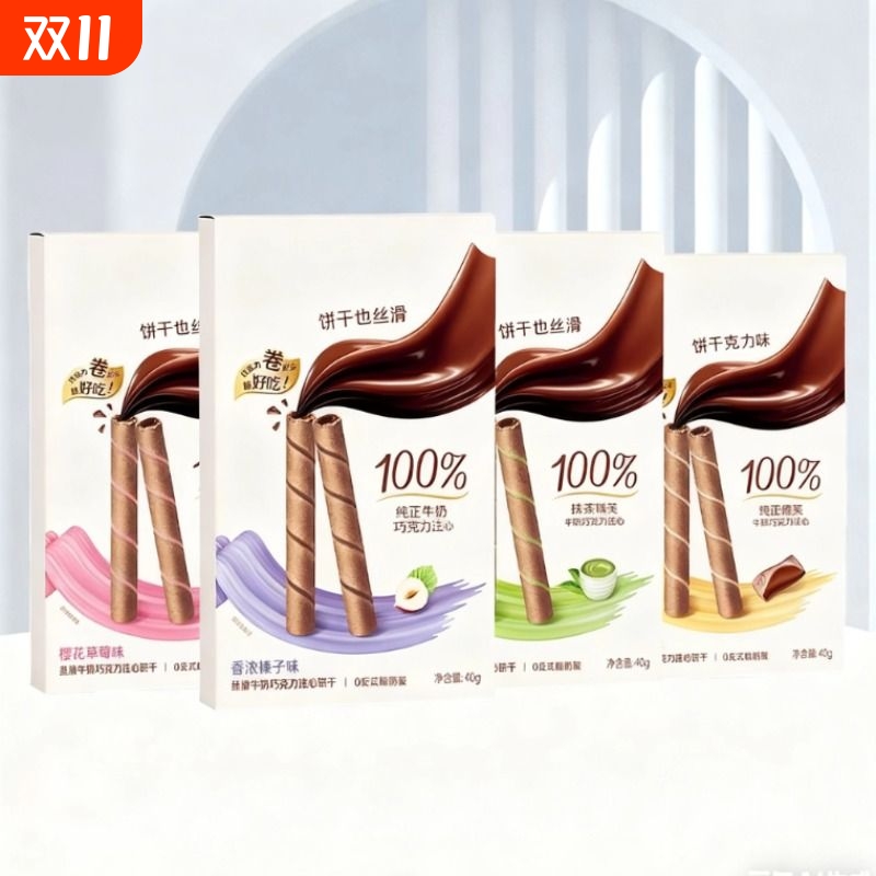 一口惊艳 榛果巧克力蛋卷 海盐花生夹心酥脆饼干 注心糕点