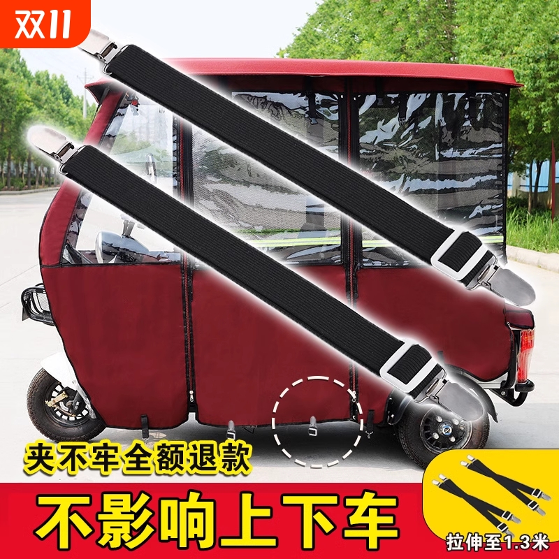 三轮车防风夹子车雨棚挡风帘固定夹绳电动老年车可调节弹力带帘子