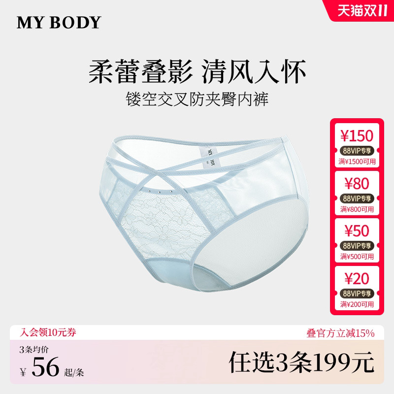 MYBODY性感纯欲蕾丝网纱三角短裤