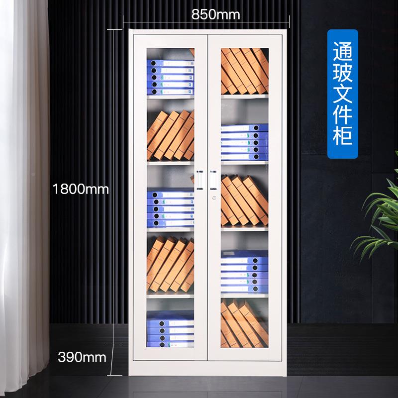 柜铁皮凭通体玻璃对开门柜 钢制78859文件柜财务铁证资料皮柜子