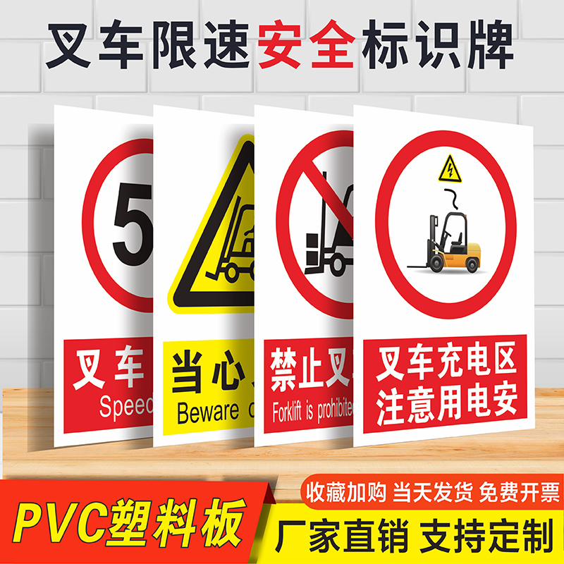当心叉车警示牌安全标识牌限速速行驶注意安全禁止通行叉车充电区严禁