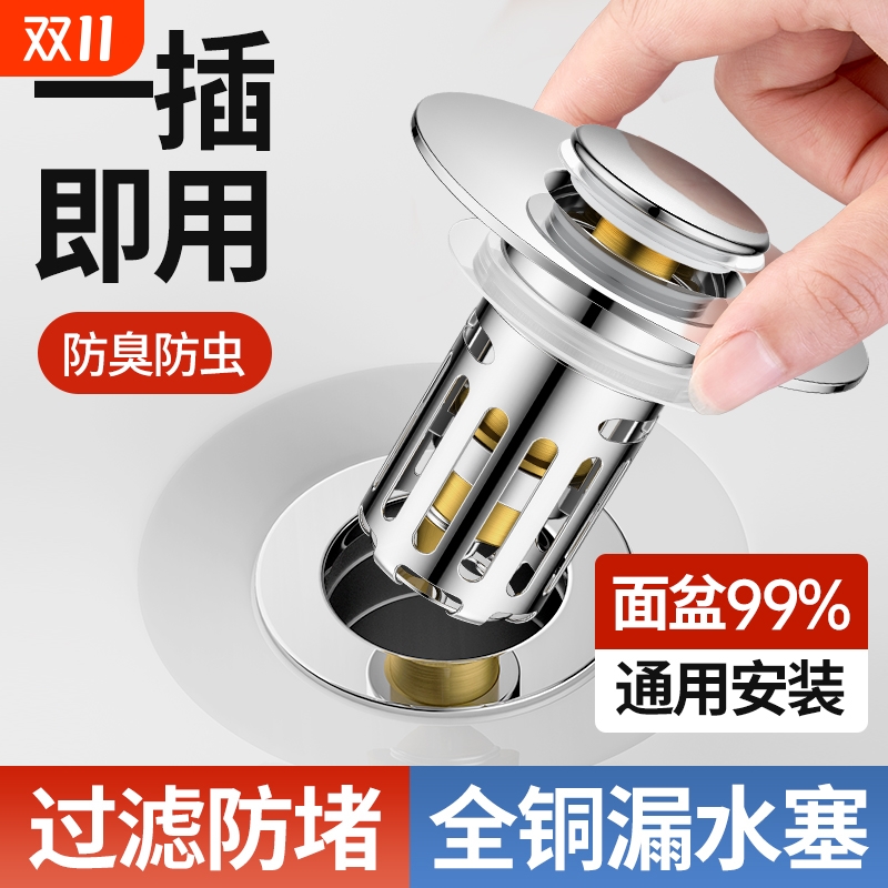 洗手槽水塞地漏卫生间下水器过滤弹跳芯按压式多尺寸翻盖配件专用