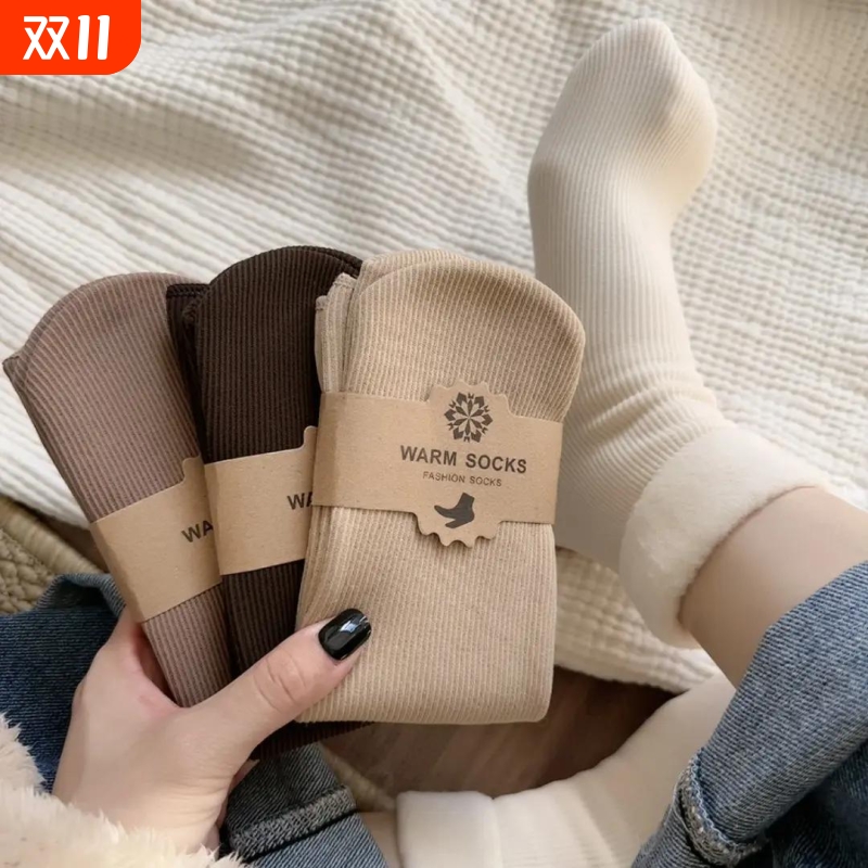 雪地袜加绒加厚保暖女中筒袜秋冬