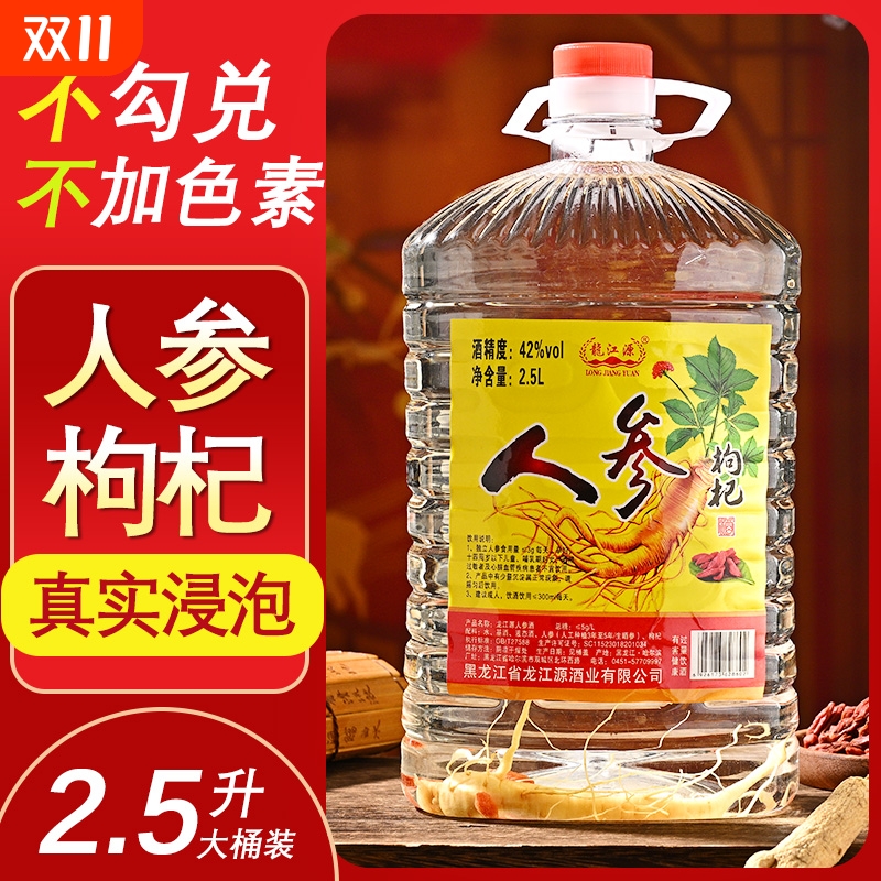 龙江源人参枸杞酒42度粮食白酒基酒人参酒养生酒补酒2500ml桶