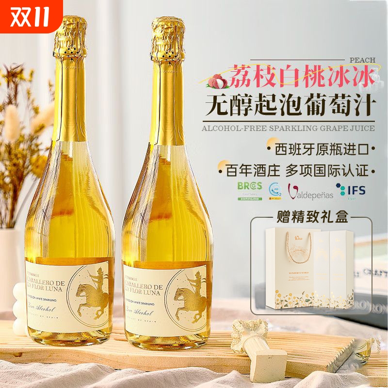 西班牙原瓶进口无醇起泡酒气泡酒无酒精甜白葡萄酒甜红女士礼盒装