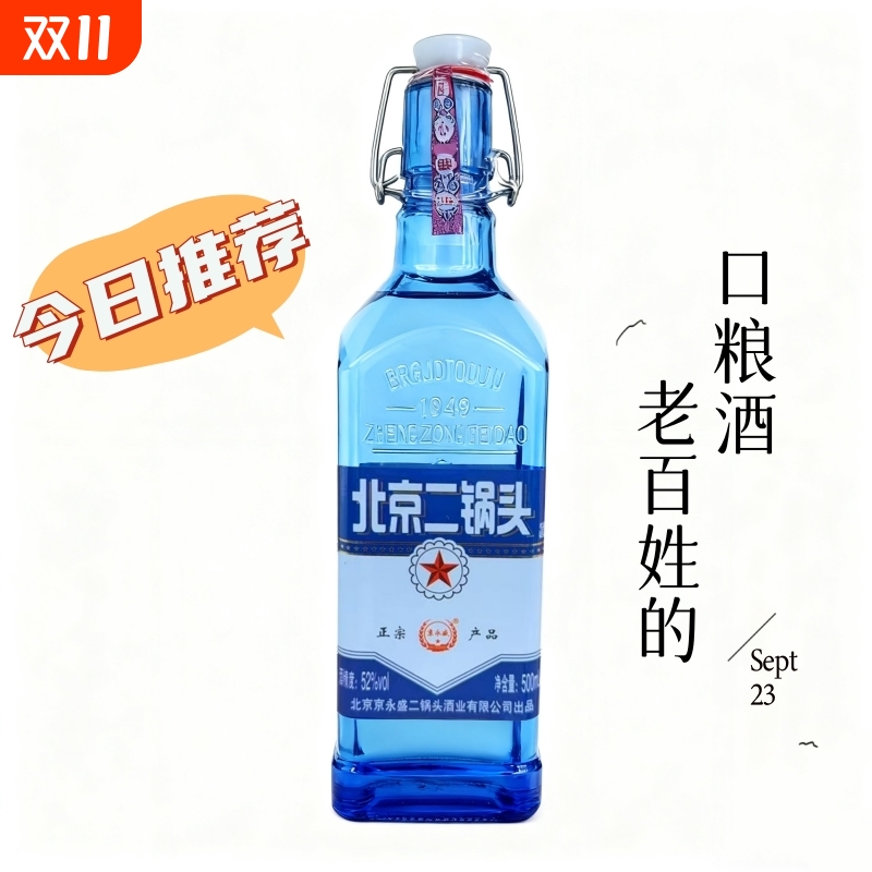 北京二锅头52度500ml纯粮酿浓香