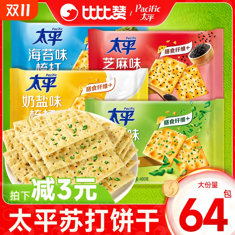 太平苏打饼干奶盐香葱芝麻梳打饼干咸味酵母低糖休闲零食好吃海苔