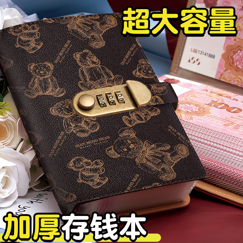 2025年新款存钱夹钱册现金存钱本大容量网红钞票收纳册密码锁儿童