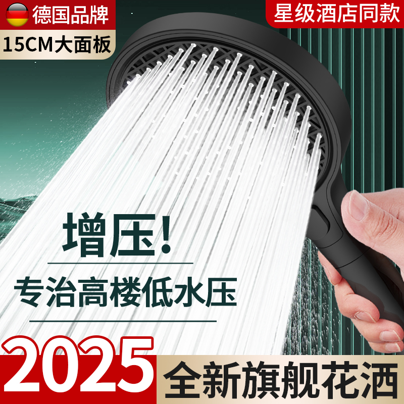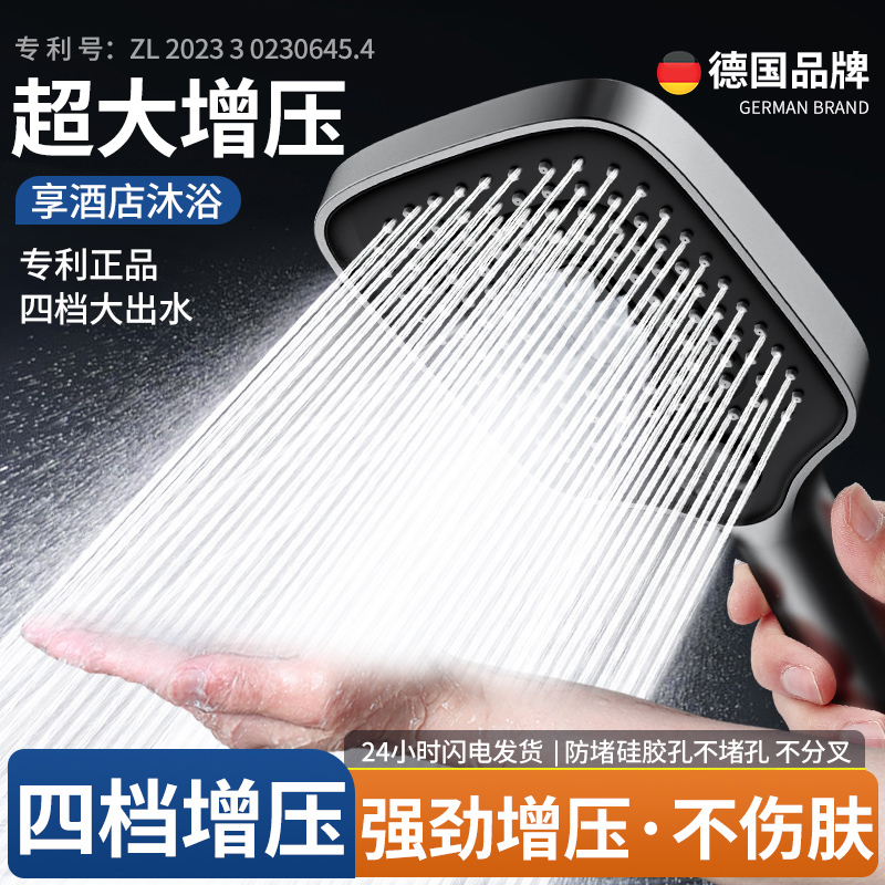 德国增压花洒喷头超强双涡轮加压大出水量浴室洗澡淋浴头浴霸套装