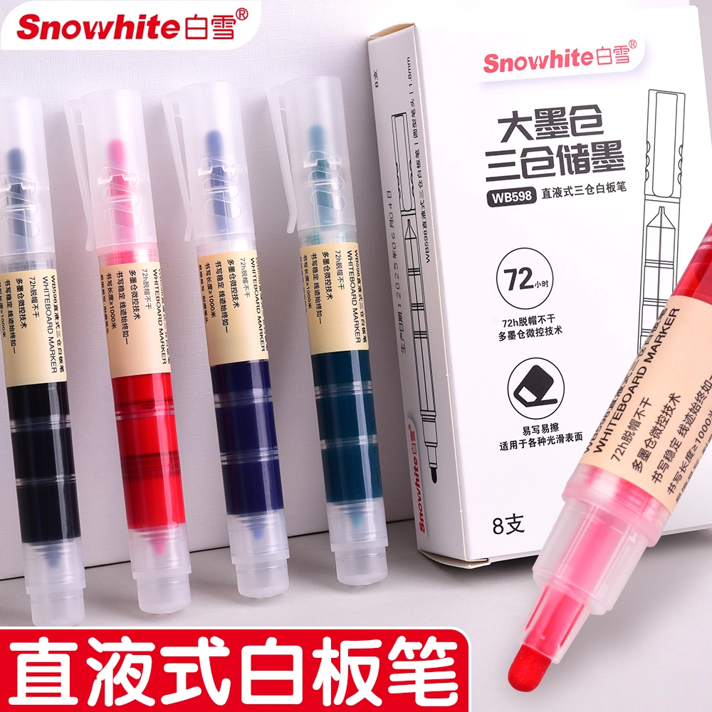 白雪直液式大容量三仓可擦白板笔细头可擦儿童无毒彩色白板笔教师用粗