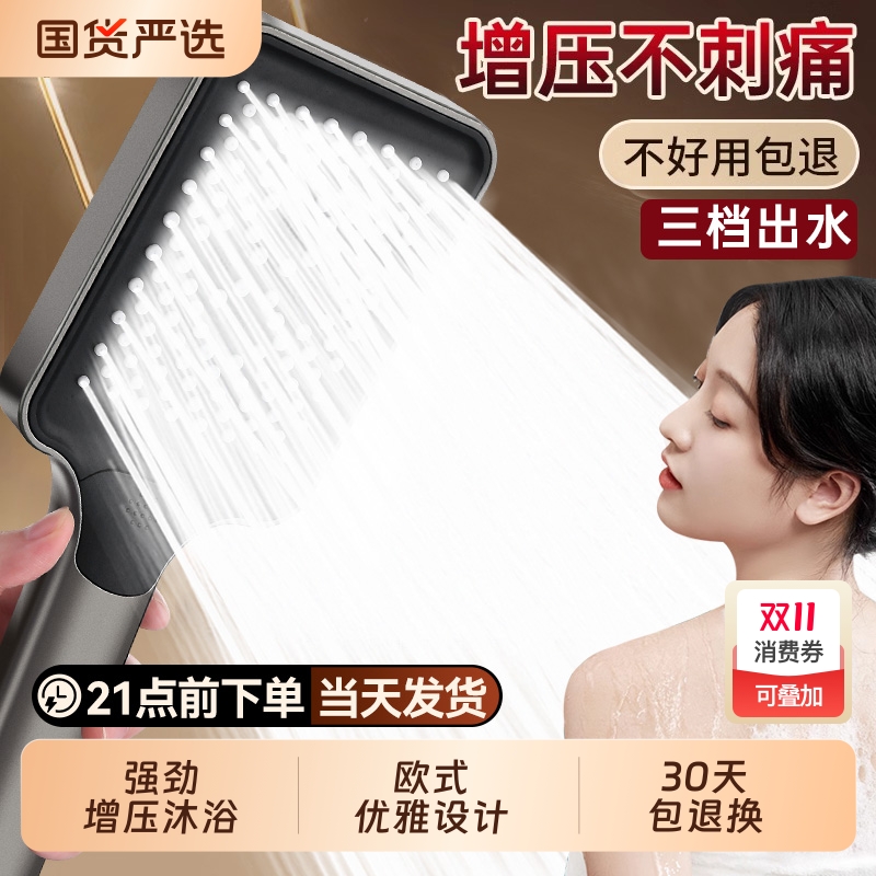 超粗孔大出水量花洒喷头洗澡淋浴头大面板洗澡喷淋增压浴室软管