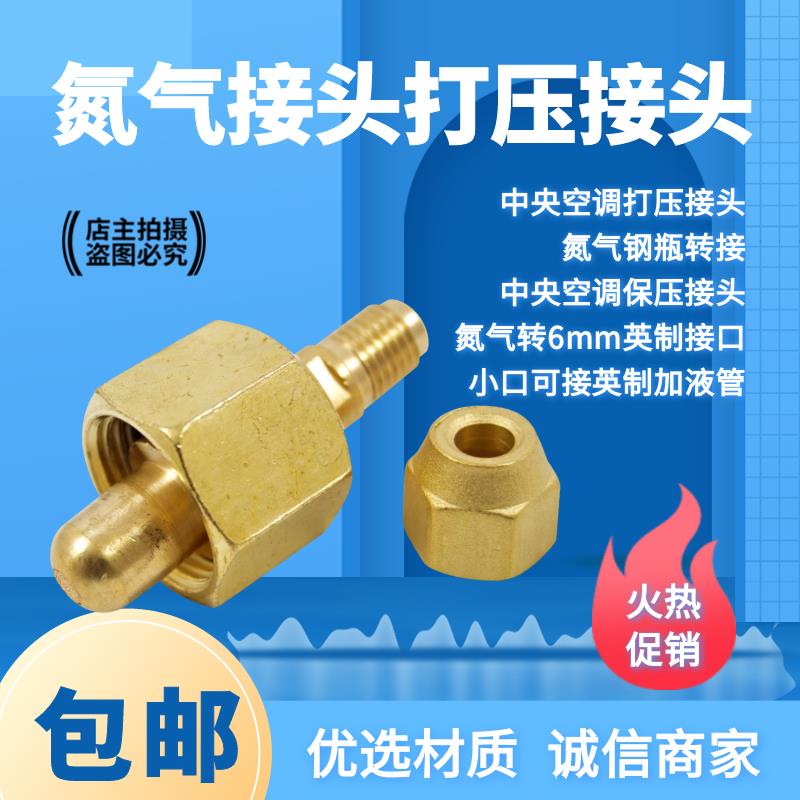 中央空调氮气打压保压转接头氧气瓶英制冷媒管1/4铜螺帽钠子接头