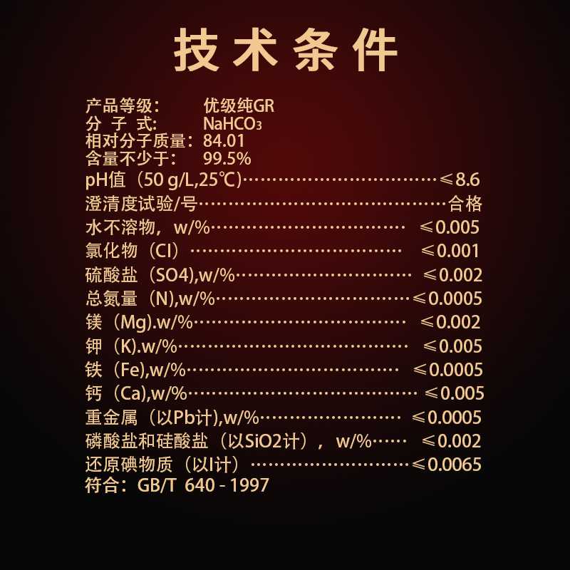 国药碳酸氢钠AR分析纯沪试实验室化学试剂SPSR海缸滴定KH小苏