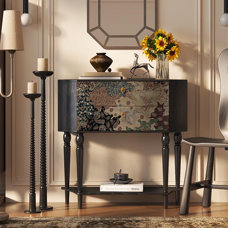 鹏音伴法式复古客厅玄关 柜 入户正对门靠墙抽屉收纳储物装饰高脚