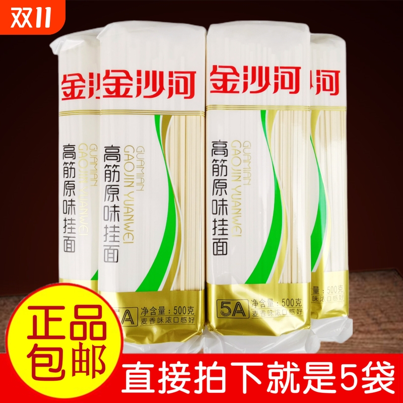 正品金沙高筋河原味挂面500gx5袋 小麦面粉待煮干面条面食5斤