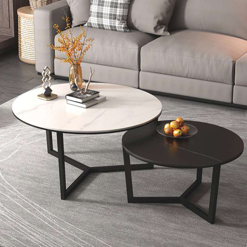轻奢风客厅圆形岩板茶几大小组合设计师款意式极简茶几边几家具