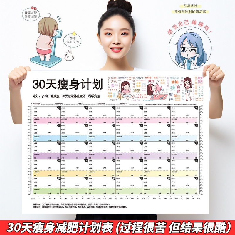 减肥计划打卡表墙贴30天自律计划拖延症监督饮食健身体重打卡瘦身