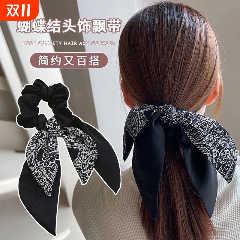 蝴蝶结头饰飘带优雅绑发丝巾头绳简约百搭发绳高级感大肠圈发饰女