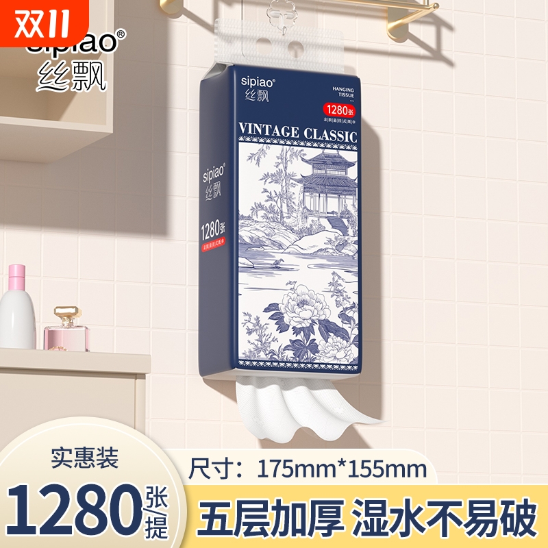 丝飘悬挂式国风抽纸家用实惠装餐巾面巾纸商用可擦手卫生纸加量装