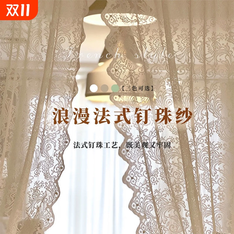 粘贴窗纱纱帘免打孔透光白色魔术蕾丝内开飘窗帘卧室阳台隔断门帘
