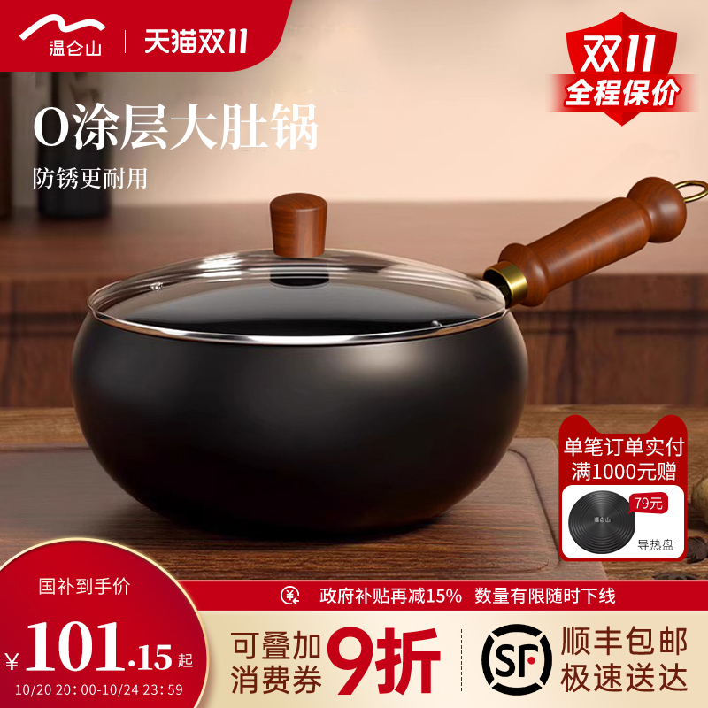 Velosan温仑山手工锻造精铁大肚锅锤纹小铁锅一人食家用小炒锅