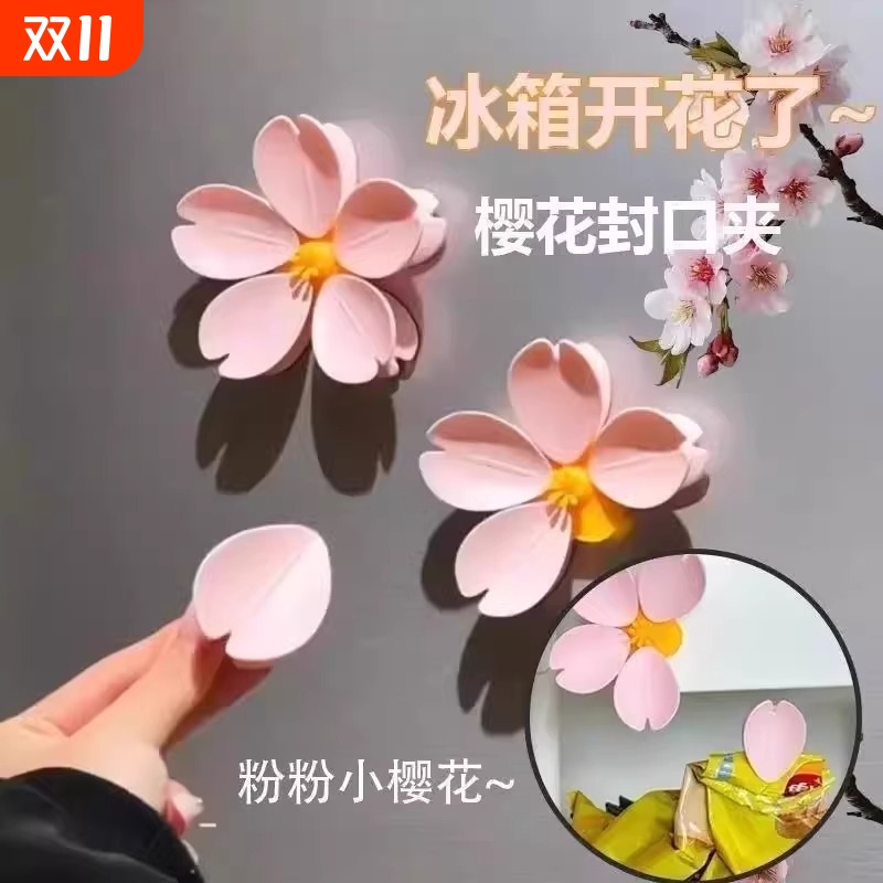 樱花磁吸冰箱贴封口夹食品袋夹子零食密封口夹磁贴个性创意封袋夹