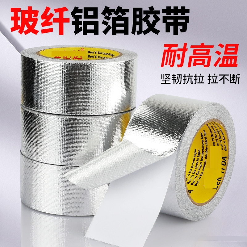 强力玻纤布铝箔胶带耐高温管道防晒自粘贴锡箔纸防水密封胶带隔热