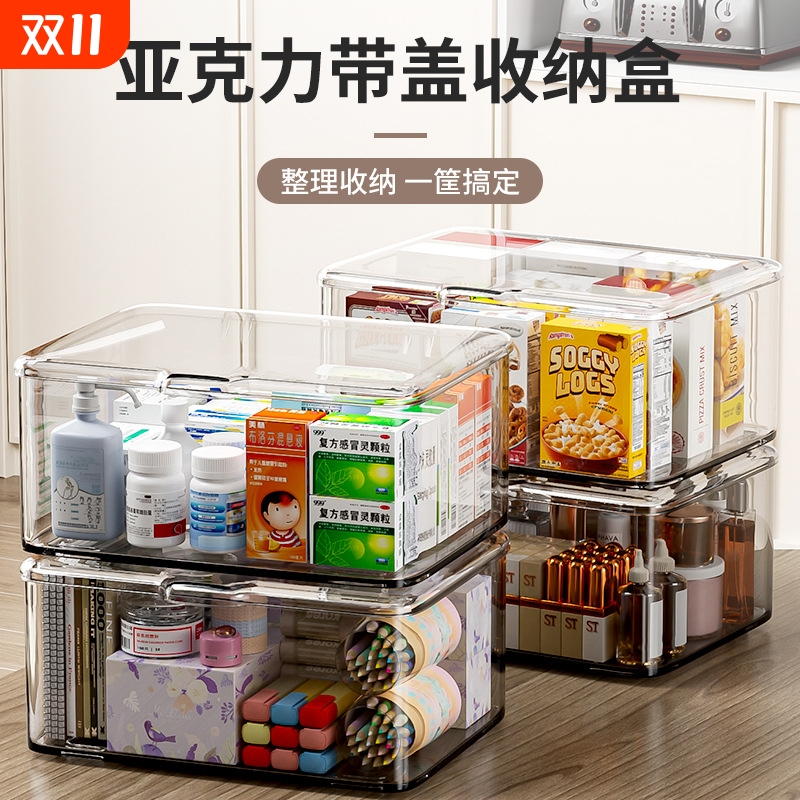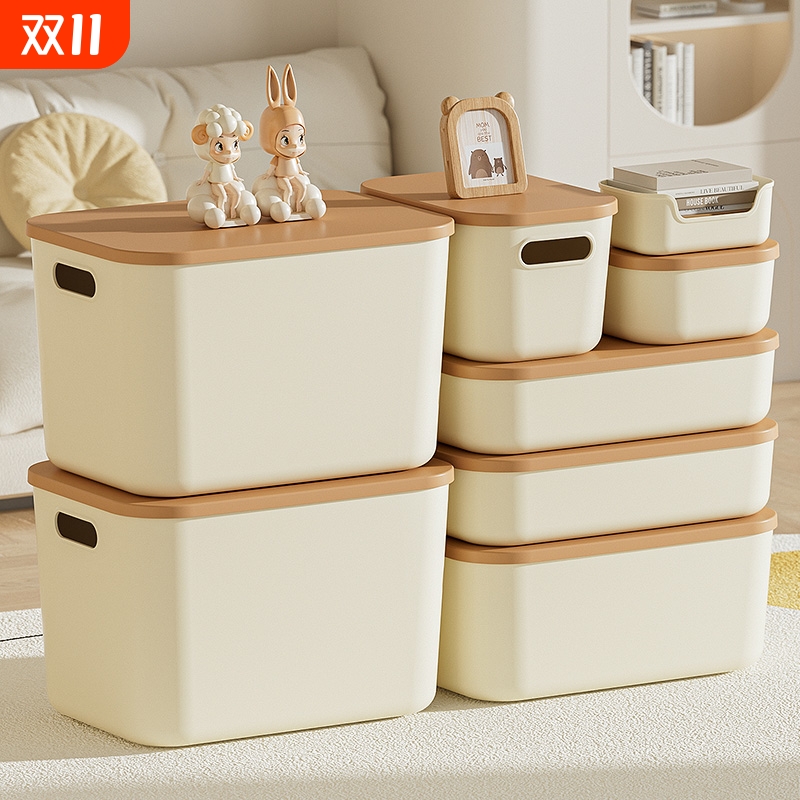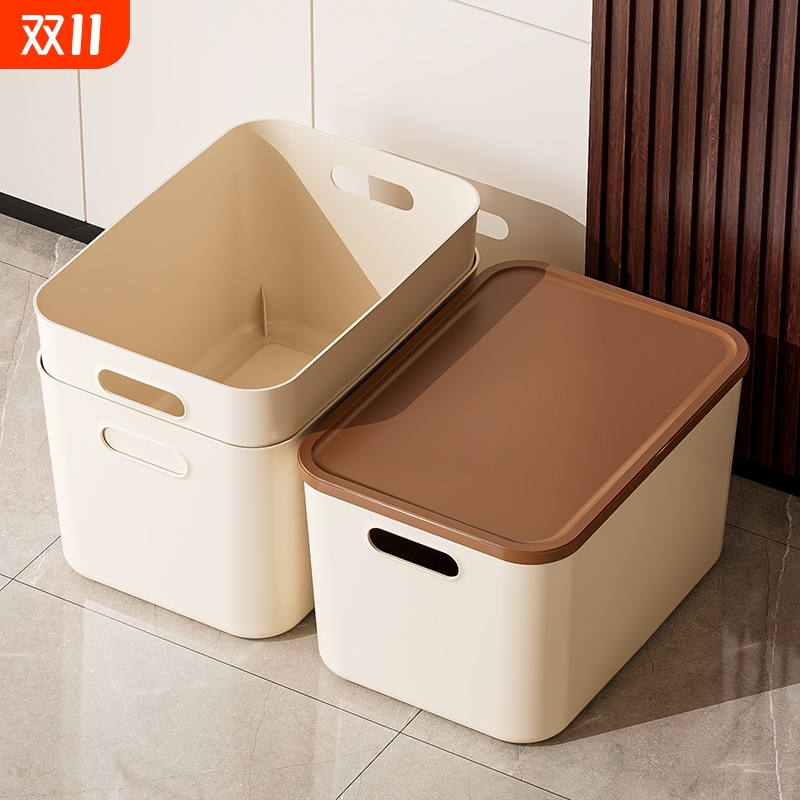 桌面收纳盒零食玩具杂物收纳筐家用长方形化妆品带盖收纳箱储物盒