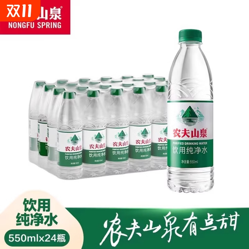 怡宝饮用纯净水555ml家用24瓶整箱露营便携包邮到家饮料瓶装