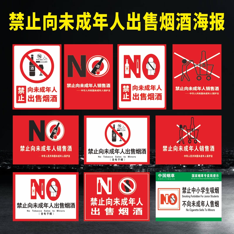 禁止向未成年人出售烟酒提示牌