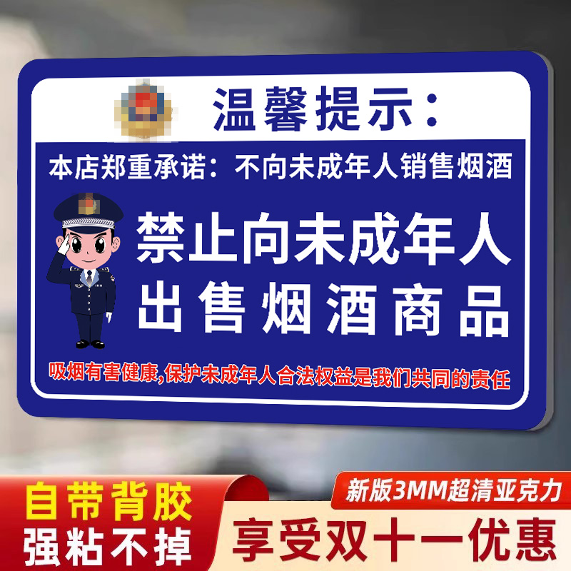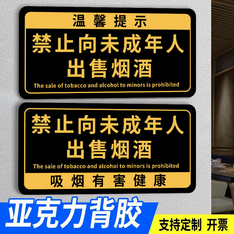 禁止向未成年人出售烟酒卷烟标识牌买酒饮酒吸烟有害健康提示牌超市标