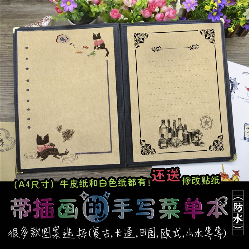 皮套插画个性创意手m写菜单谱点菜餐牌本活页咖啡奶茶冷热饮酒水
