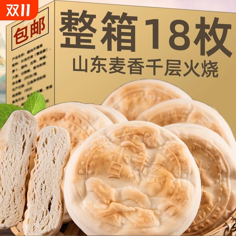 山东特产潍坊全麦千层火烧纯手工杠子头低脂面食硬面麦香烧饼馒头