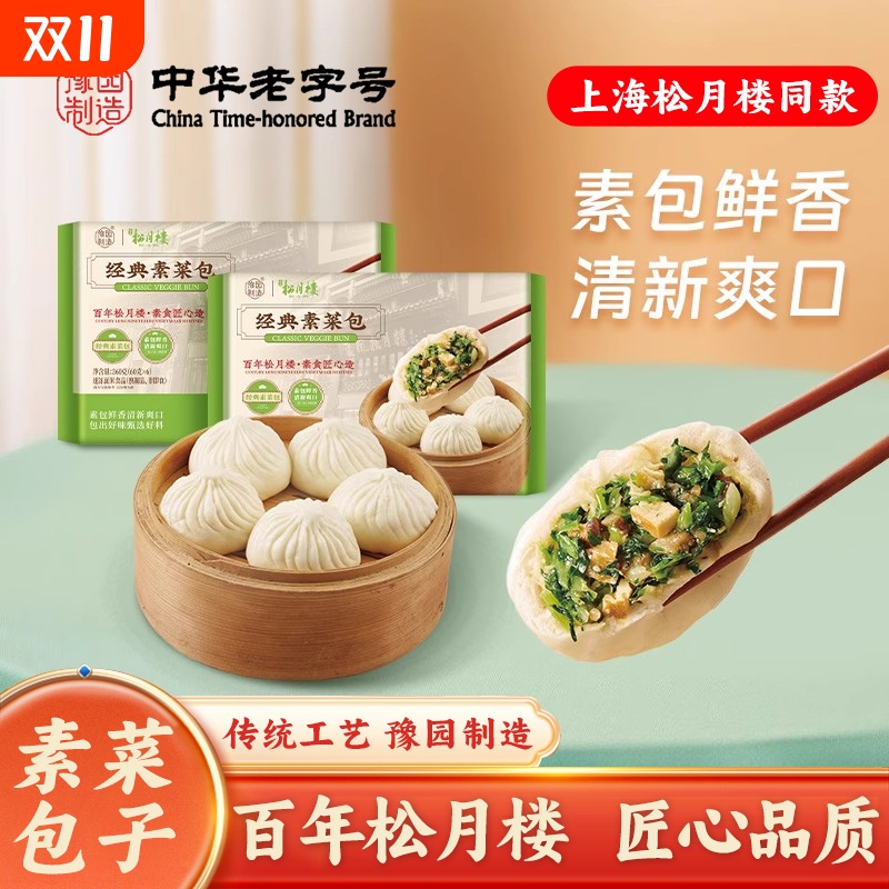 松月楼素菜包子上海老字号烧麦馒头早餐半成品速冻食豫园老面小笼