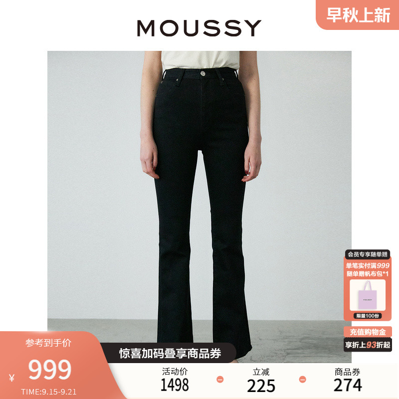 秋季高腰moussy深色微喇牛仔裤女
