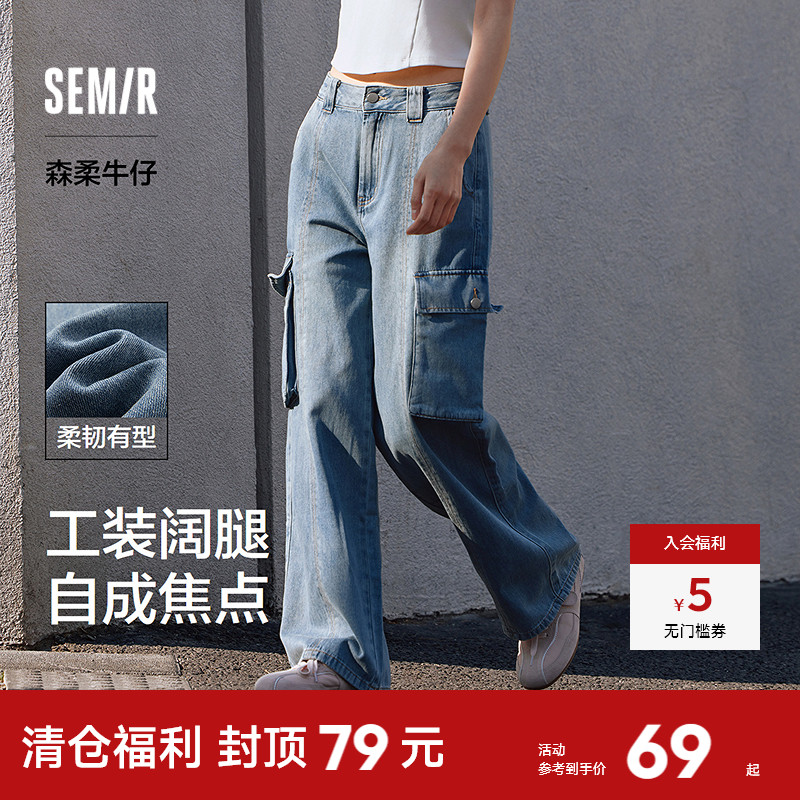 森马高街潮酷阔腿工装牛仔裤女