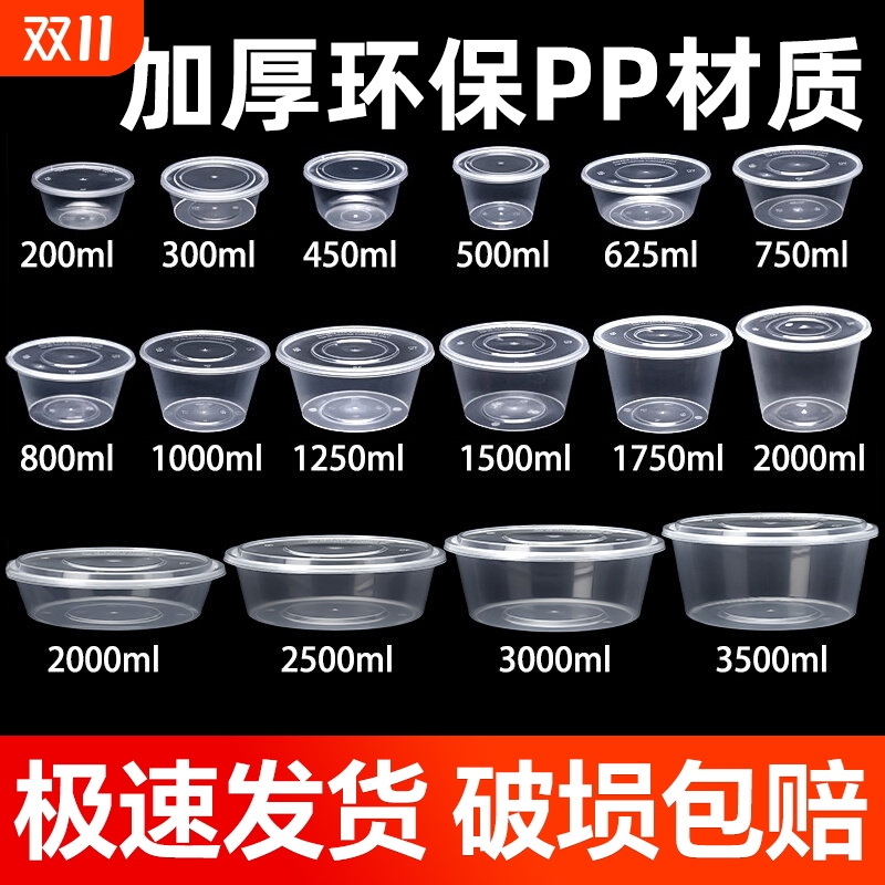 圆形一次性餐盒透明加厚塑料饭盒快餐带盖外卖便当打包盒汤碗批发