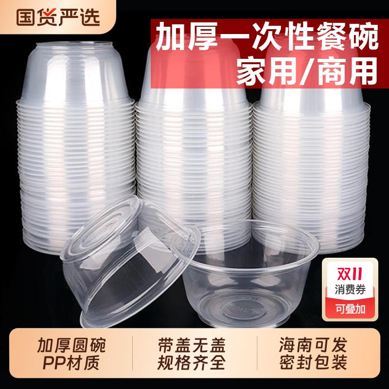 一次性碗打包餐盒塑料家用冰粉专用碗商用圆形小汤碗筷餐具吃饭盒