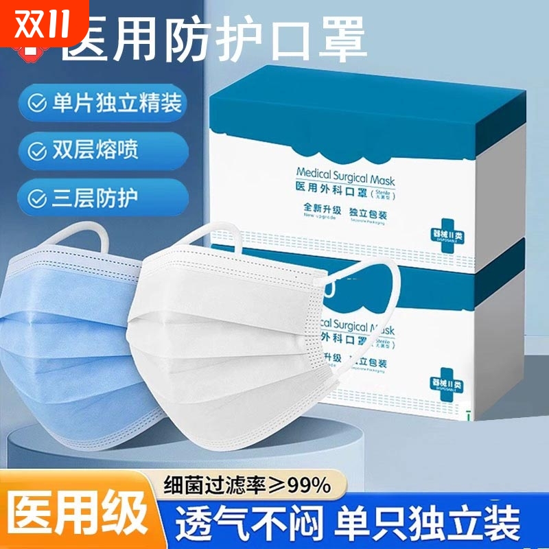 一次性口罩医用外科成人通用官方正品旗舰店独立包装透气灭菌级