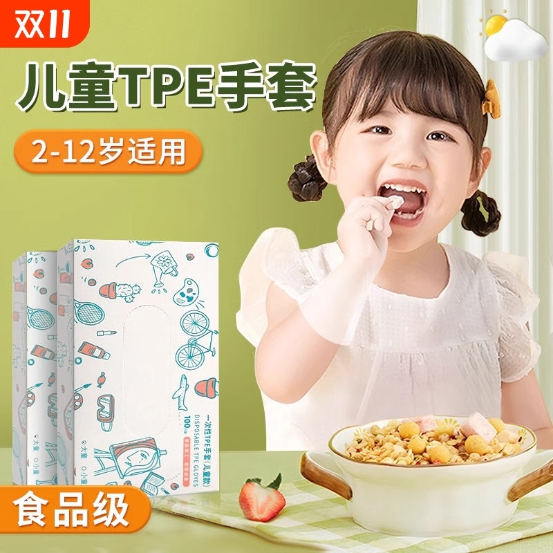 食品级手套一次性TPE盒装专用PVC塑料加厚耐用抽取式洗碗清洁防