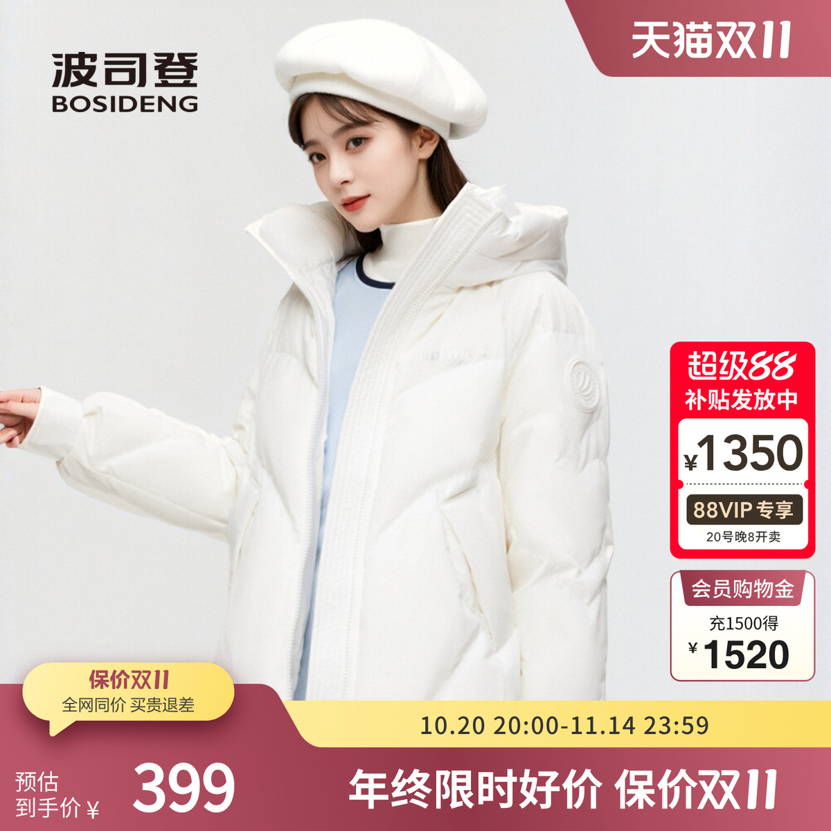 波司登奥莱冬季女一手长轻暖环保羽绒服宽松时尚百搭外套可爱连帽