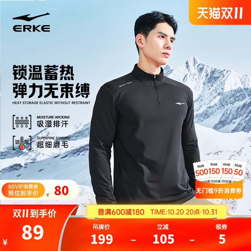 erke/鸿星尔克加绒长袖t恤卫衣男